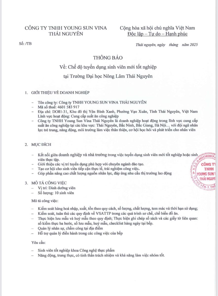 - Yêu cầu: Sinh viên tốt nghiệp khoa Công nghệ thực phẩm