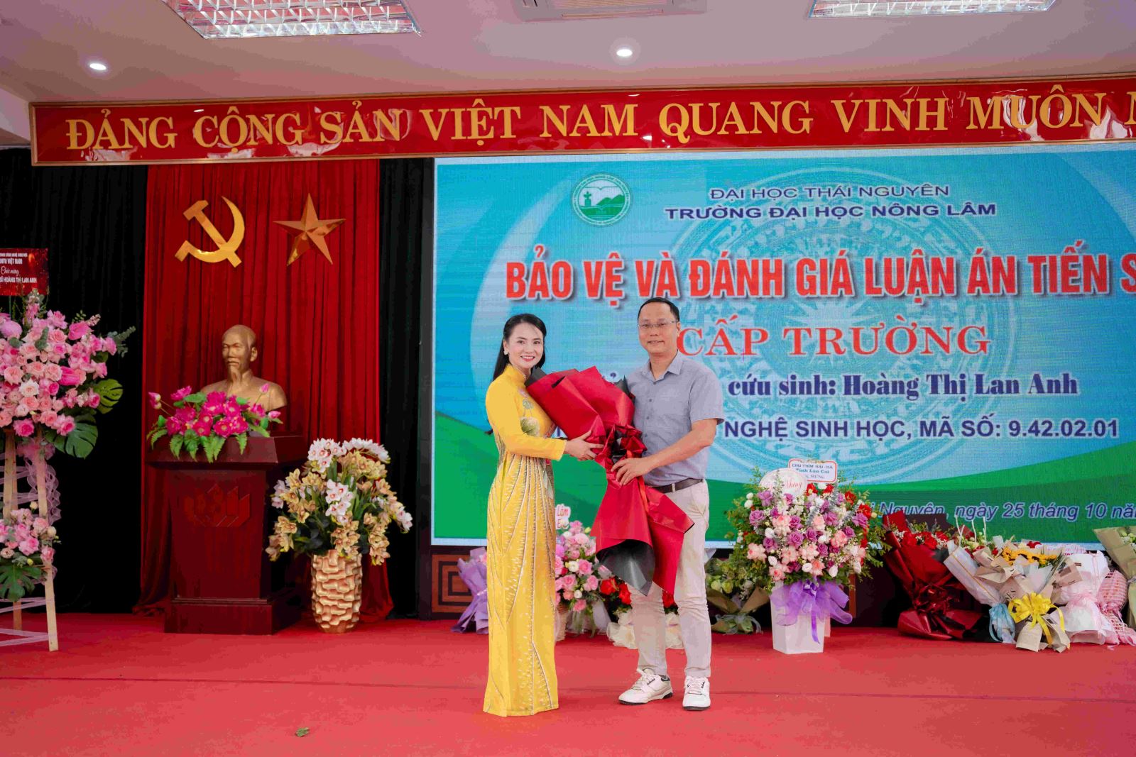 Đại diện tập thể Viện CNSH-CNTP tặng hoa chúc mừng NCS