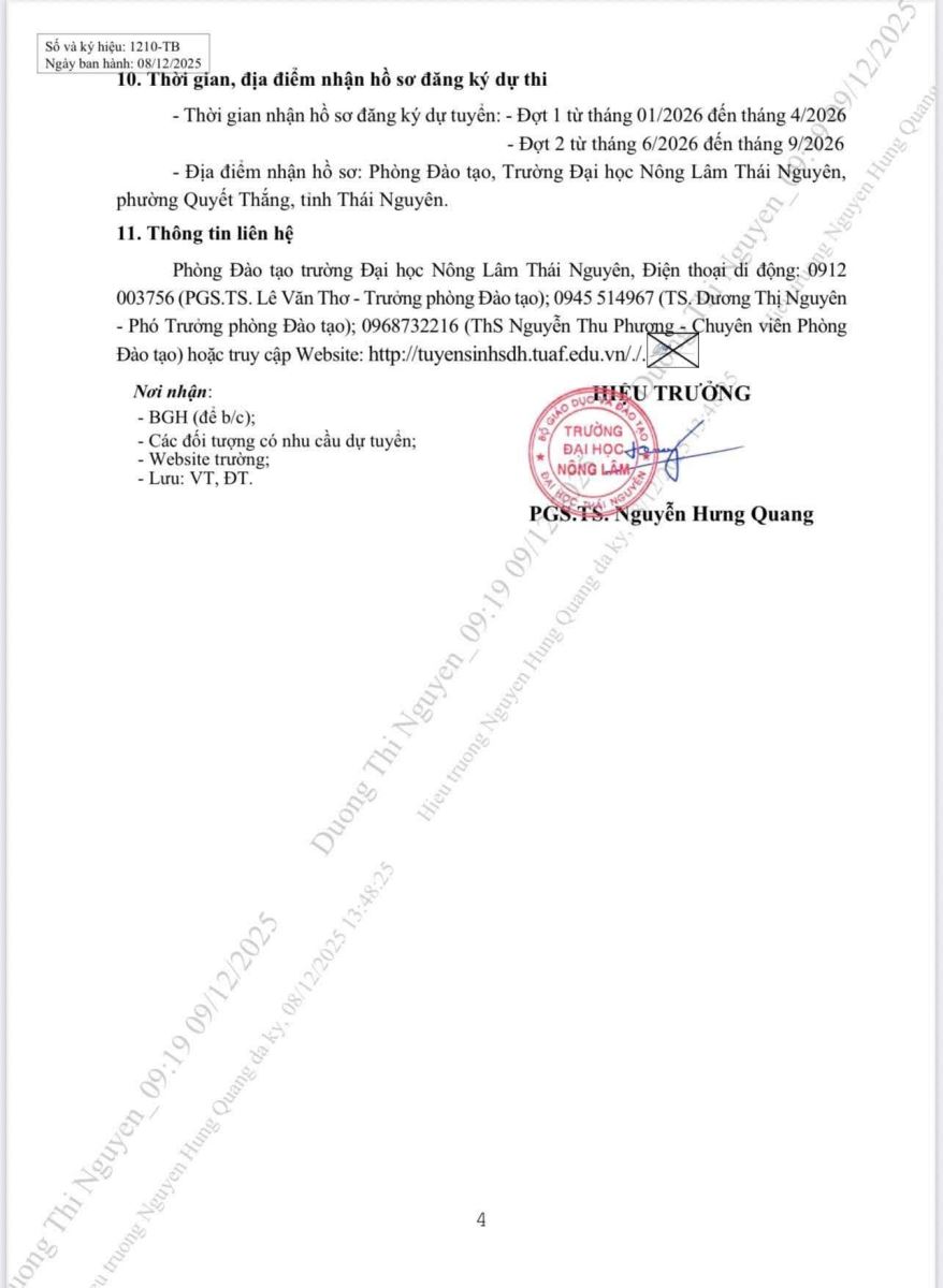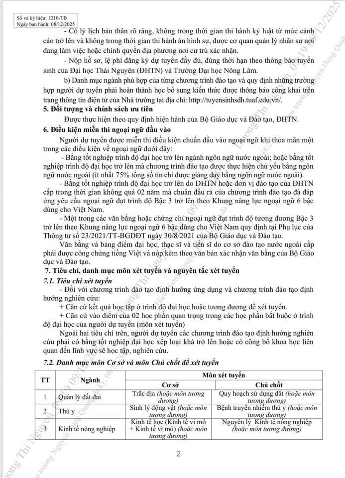 → Thông báo tuyển sinh đào tạo trình độ tiến sĩ năm 2026 - Trường Đại học Nông Lâm Thái Nguyên (12/2025)