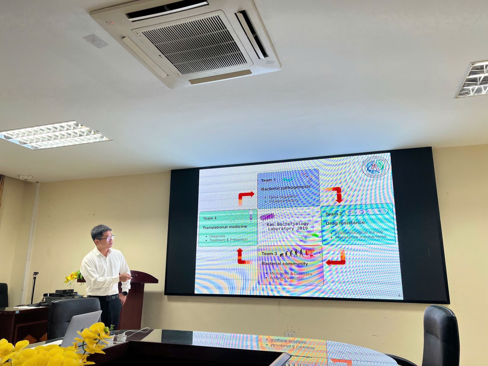 Giáo sư Cheng-Yen Kao chia sẻ bài nói chuyện học thuật với chủ đề "From Basic Microbiology Research to Applied Microbiology: Utilizing Probiotics and Bacteriophages for Therapy and Disease Improvement"