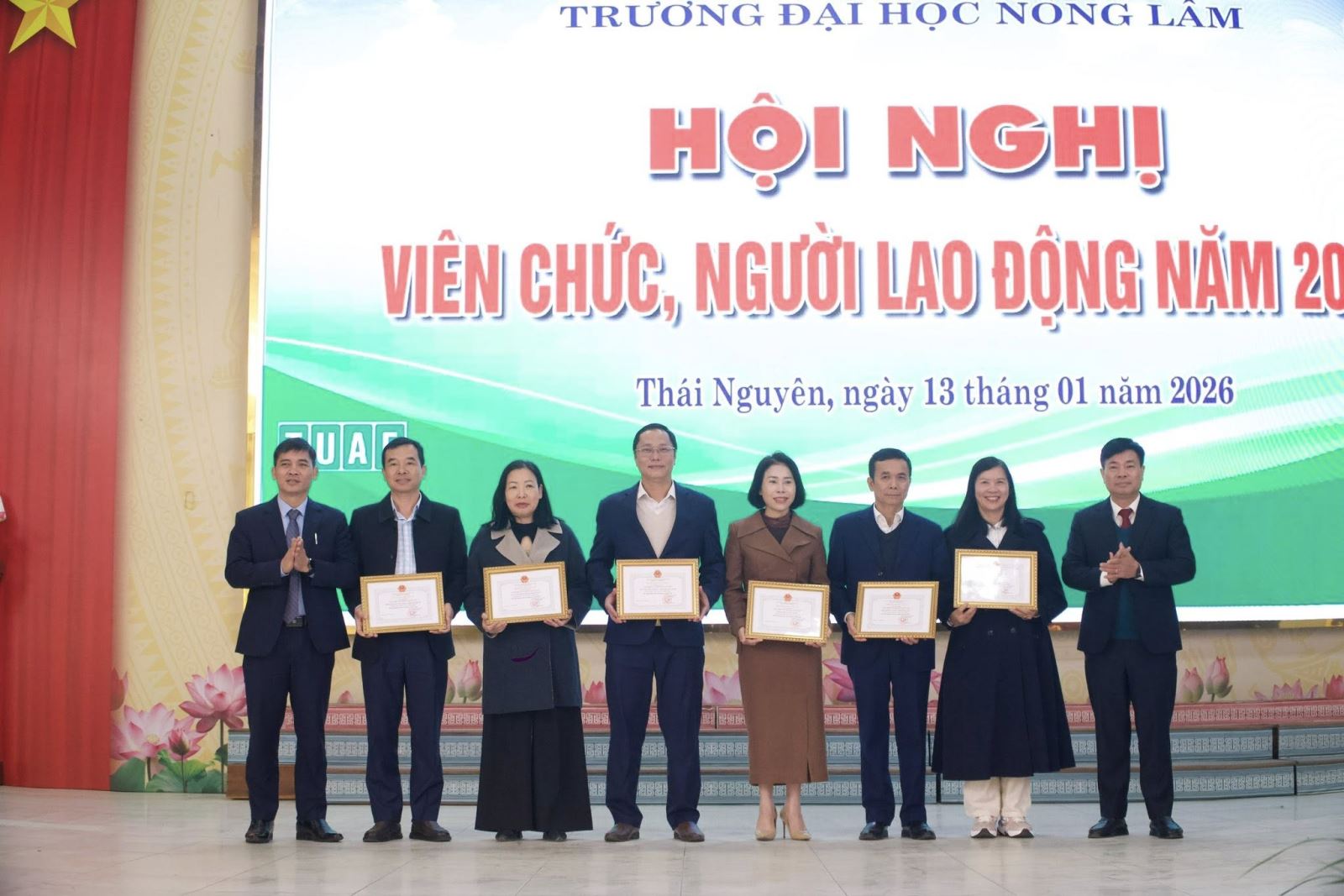 Bên cạnh thành tích của tập thể, nhiều viên chức, giảng viên của Viện có thành tích xuất sắc trong năm học 2025 cũng đã được Giám đốc Đại học Thái Nguyên và Hiệu trưởng Trường Đại học Nông Lâm trao Giấy khen, nhằm biểu dương những đóng góp tích cực trong giảng dạy, nghiên cứu khoa học và các hoạt động chuyên môn.