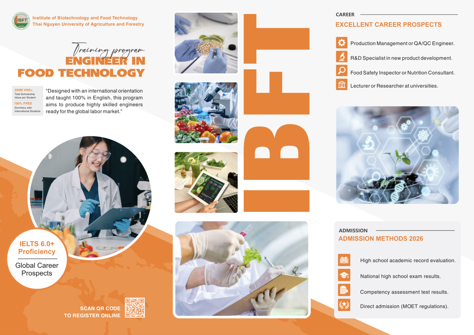 The Food Technology Engineering Program at the Institute of Biotechnology and Food Technology (IBFT), Thai Nguyen University of Agriculture and Forestry (TUAF) is the perfect choice for you!